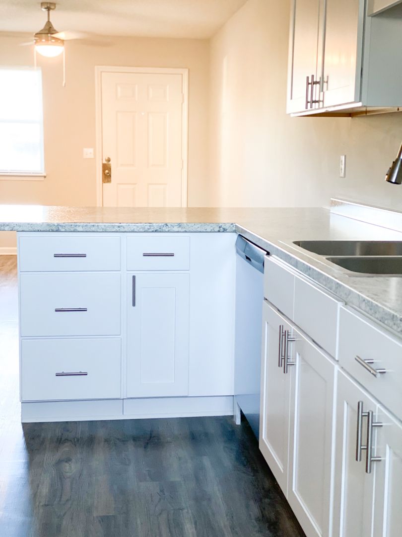Eastgate Village Apartments is now renting *NEWLY UPDATED* 2 bedroom and 1 bathroom apartments! The updated white cabinets with brushed silver pulls, new countertops, and stainless steel appliances and plumbing fixtures provide a modern look. Luxury Vinyl Plank flooring in the common areas compliments the kitchen upgrades and makes for easier upkeep! The bedroom carpets have been freshly replaced as well.